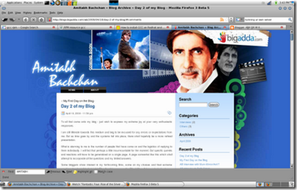 The superstar has a blog corner on social networking website bigadda, whe he uses to share daily activities of his life and communicate with his fans.